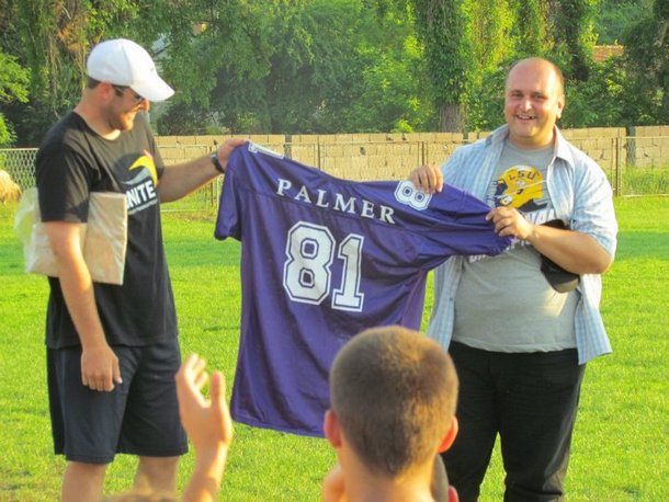 Na kraju kampa organizator i domaćin, KAF Kraljevo Royal Crowns je u svoje počasno članstvo primio sve američke trenere, darujući im tom prilikom trenerske majice, a Majklu Palmeru, novom počasnom kapitenu, dres #81 Kraljevskih Kruna. Podsetimo, Krune od nedavno već imaju jednog počasnog kapitena, Acu Seltika, frontmena benda Ortodox Celts, a sada je i jedan NFL igrač postao deo kraljevačkog tima.